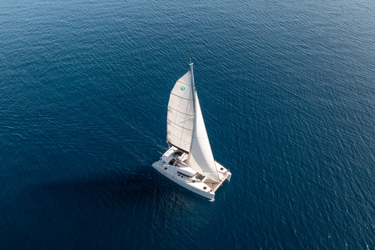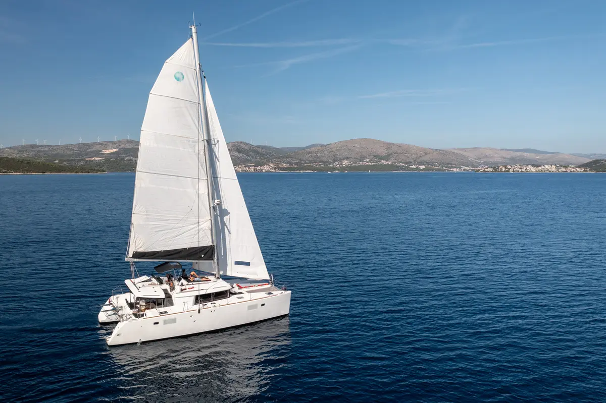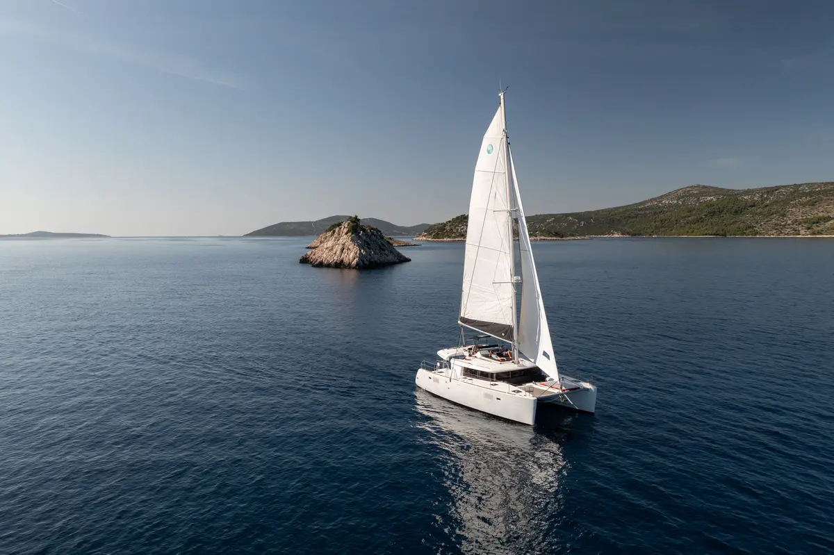 Watch our Lagoon 450 catamaran Falco in action – spacious, elegant, and ideal for private charters along the Adriatic coast of Croatia.