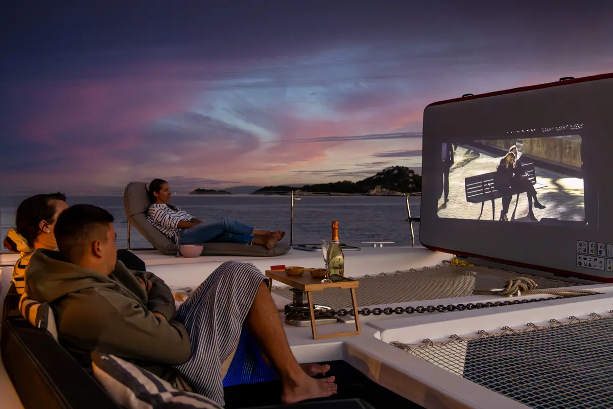 - Gas BBQ and open-air cinema setup