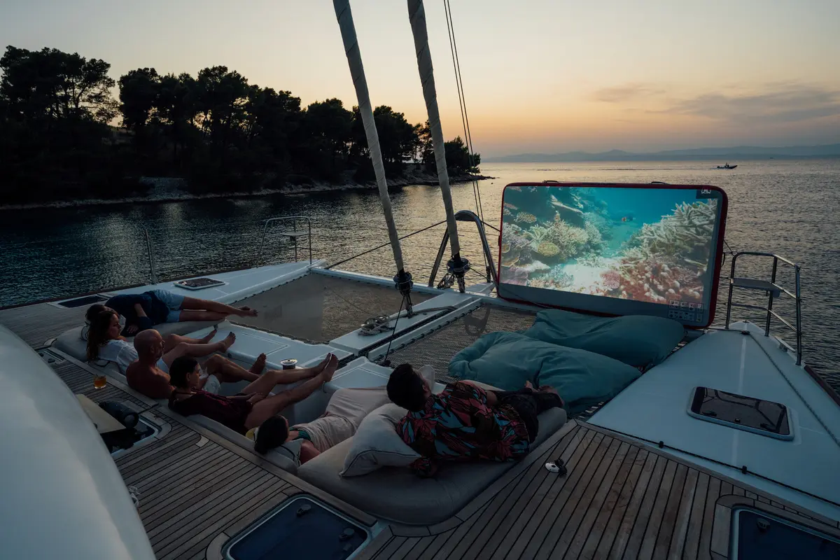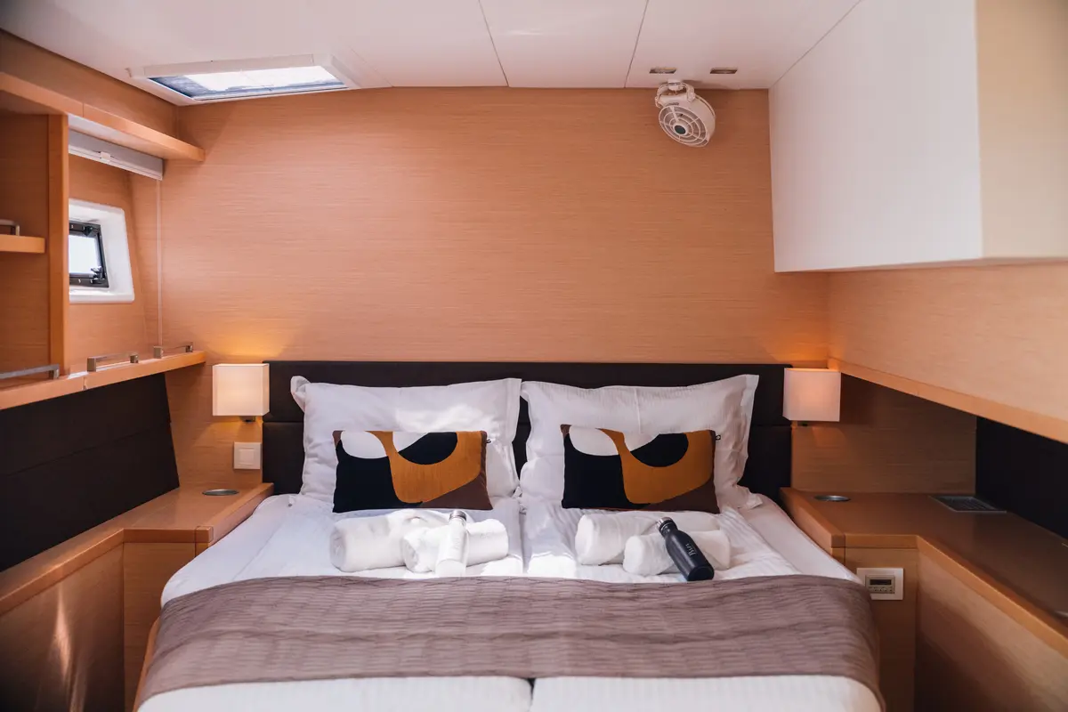 - Spacious bow area with sunbeds and tranquil sea sounds